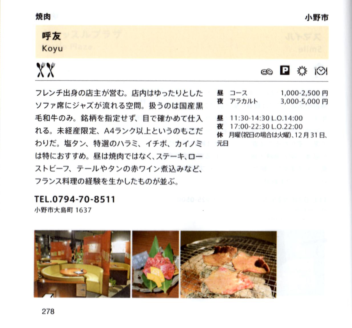 ミシュランガイド掲載飲食店4 焼肉 呼友(小野市)
