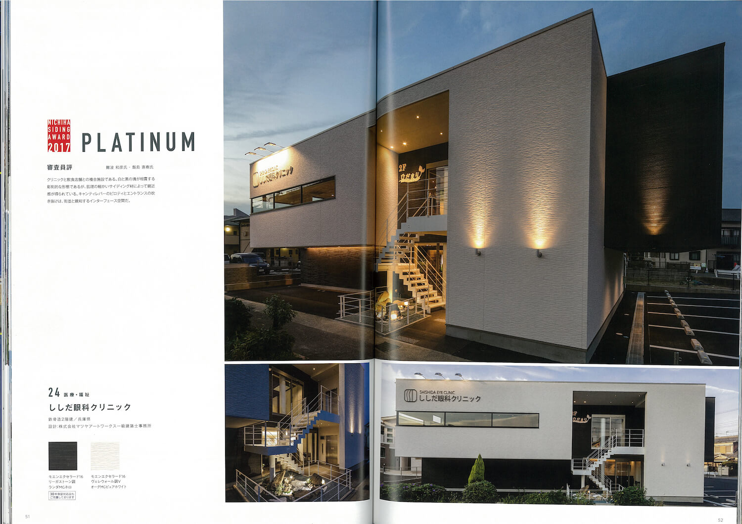 公開日:2018/05/27 最終更新日:2024/03/01 眼科クリニック 設計 事例が ニチハのカタログに掲載されました 日本最大の外壁サイディングメーカー ニチハ のカタログに クリニックデザイン 事例「 ししだ 眼科クリニック 」の 設計 が掲載されました。 ニチハのサイトはこちら 掲載された実績紹介はこちら クリニックデザインクリニック設計ショールーム設計 兵庫県明石眼科クリニック PREVIOUS POST ← TILE DESIGN BOOK NEXT POST GOOD DESIGN AWARD WINNER (AUS) → Related Posts 月刊商店建築4月号に「横浜ゆうみらい 小児歯科・矯正歯科」が登場! 月刊商店建築4月号の「設計事務所」運営、これからどうする?!特集と、業種特集/クリニックの両特集ページにKTXアーキラボが登場、我々の取り組みをご紹介いただきました。 記事はこちらからご覧いただけますhttps://pr… Read more » いいね:いいね 読み込み中… Posted on 2026年4月16日 by st-creative NewsWeekインタビュー NewsWeekに弊社松本哲哉へのインタビューが掲載されました。 驚きと感動を与える建築・空間デザインでビジネスに貢献し、人々の心に未来を描く これまでに世界16カ国以上170タイトルを超える国際デザインアワードを受賞し… Read more » いいね:いいね 読み込み中… Posted on 2024年8月6日 by st-creative 韓国のデザインメディアDESIGNSORIにインタビュー掲載 韓国のデザインメディアDESIGNSORIにインタビューが掲載されました。 インタビュー記事はこちらからご覧いただけますhttps://www.designsori.com/interview/1202802 いいね:いいね 読み込み中… Posted on 2024年4月8日 by st-creative TOPPANのwebサイトにインタビュー掲載 TOPPANのwebサイトに弊社ヘッドアーキテクト松本哲哉のインタビューが掲載されました。 掲載作品 ■ヤマダストアー 新青山店 The Marketrium インタビュー記事はこちらからご覧いただけますhtt… Read more » いいね:いいね 読み込み中… Posted on 2024年1月9日 by st-creative