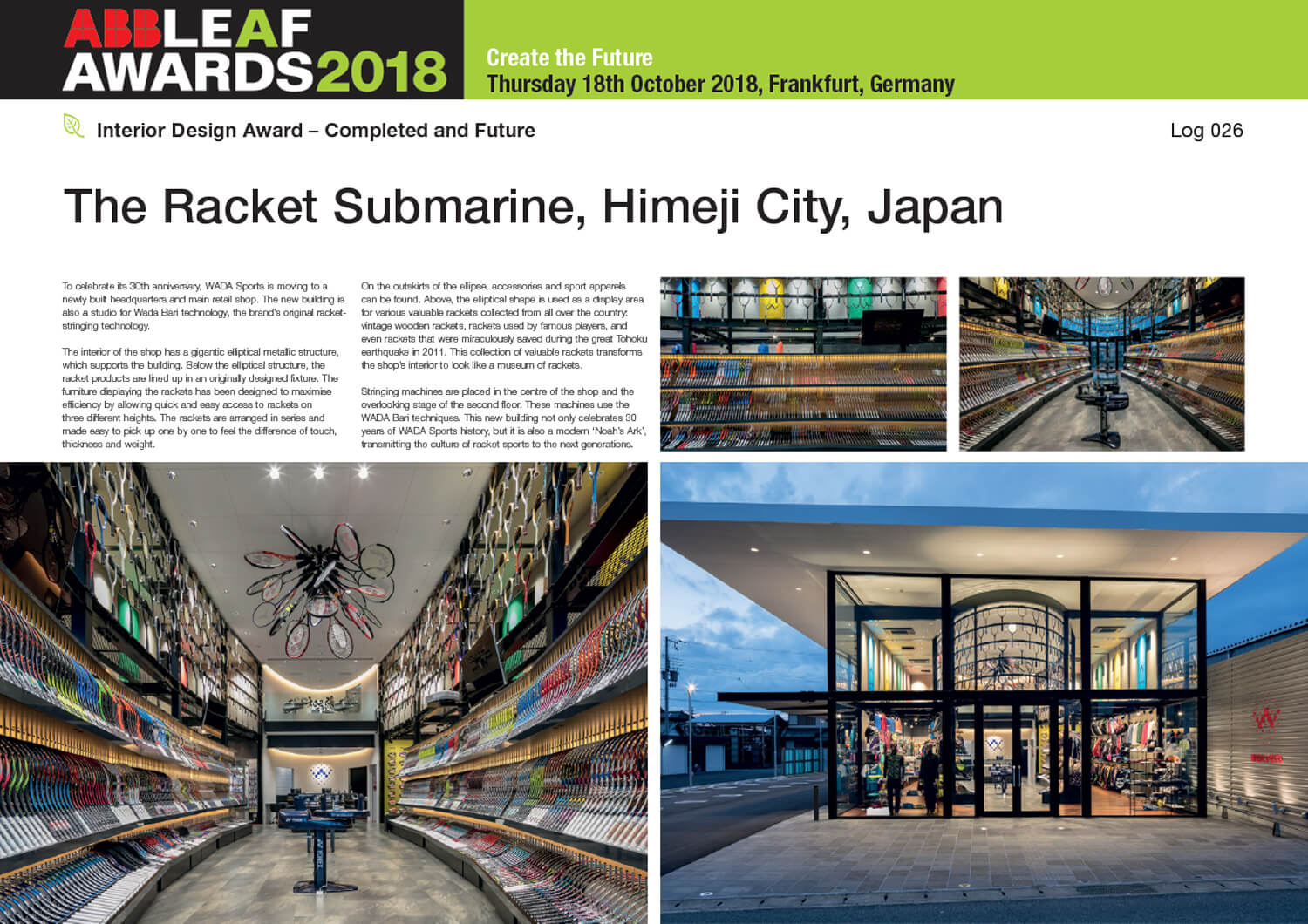 店舗デザイン 2事例が英国ABB LEAFアワード ファイナリストに。ワダスポーツがインテリア部門、いなみころ三木別所店が商業建築部門にてノミネートされました。