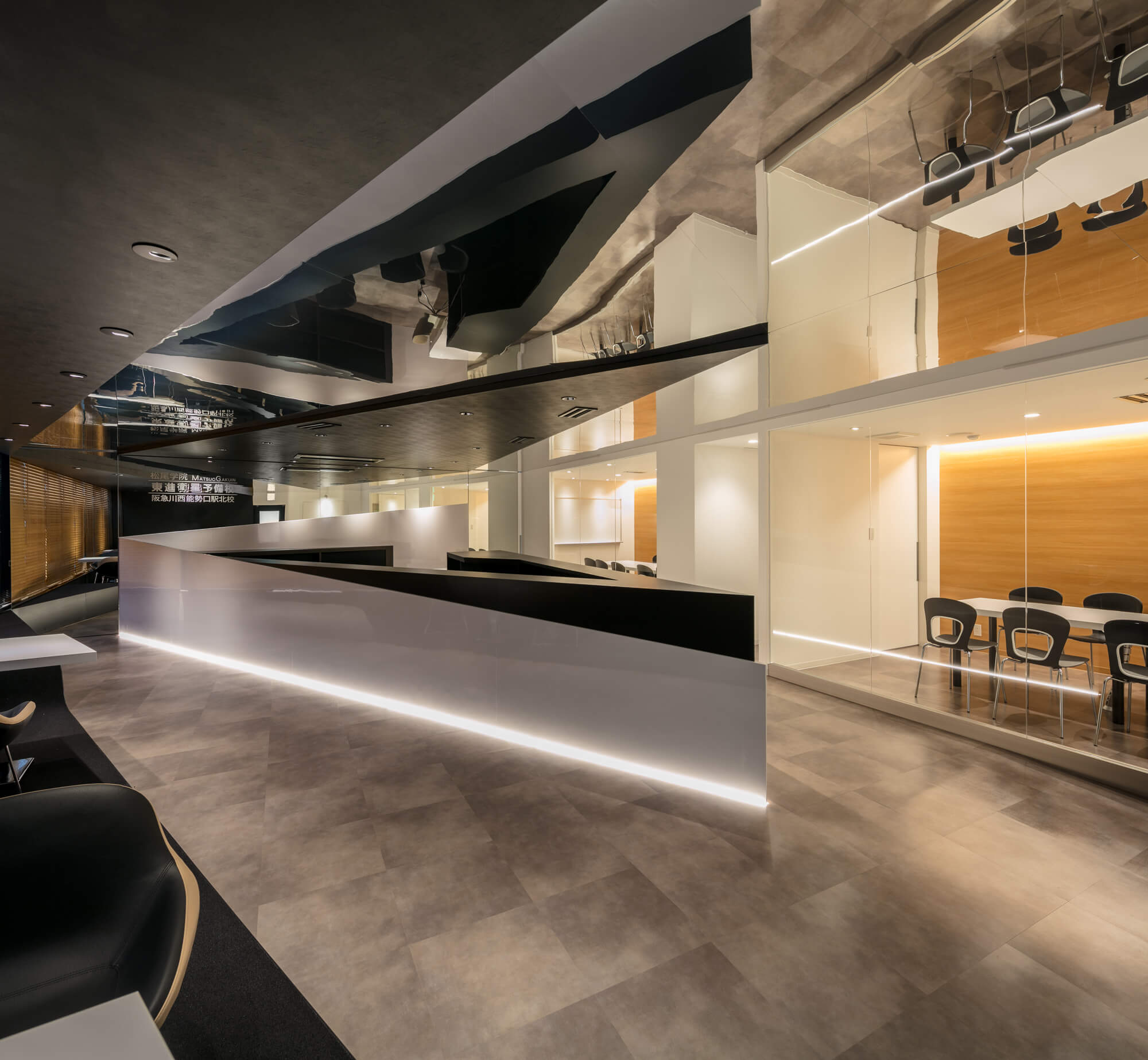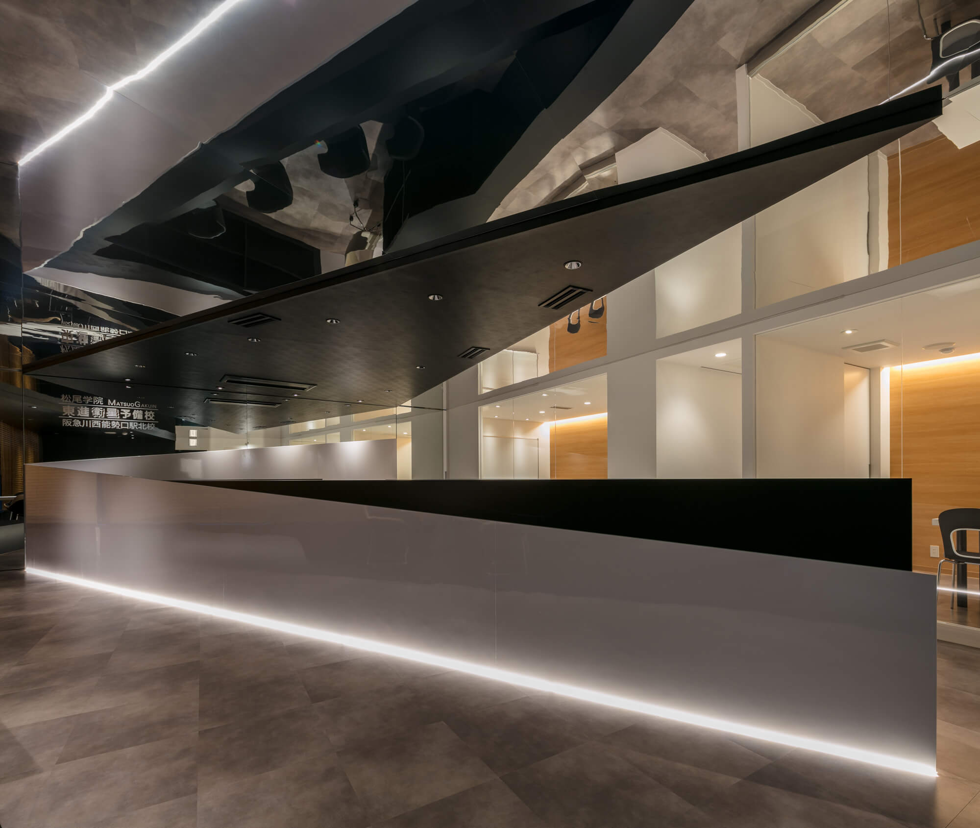 For its location in Kawanishi, the school needed new reception, consultation and conference spaces in order to be more attractive and provide better accessibility to both subscribed and prospective students.