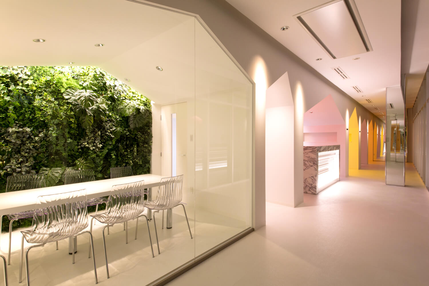 ロケーションからクライアントにとっての顧客、つまり生徒のほとんどが女子生徒になると想定されたため、私たちはより女性好みの空間デザインを目指しました。