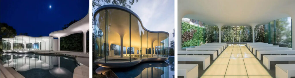今回受賞したプロジェクトは結婚式場内に位置する、チャペルの建て替え計画。新郎新婦にとって特別な日を、より特別な日にする非日常的な風景が求められました。